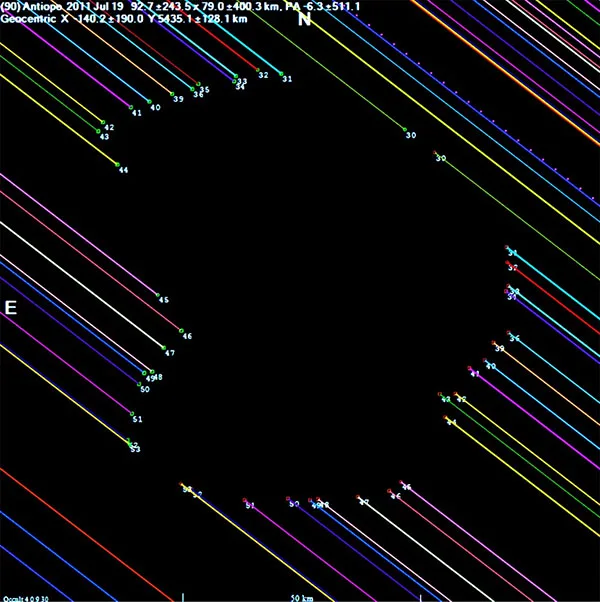 Quand plusieurs observateurs se coordonnent pour faire la même observation, à différentes positions sur la terre, on peut alors retrouver la section de l’astéroïde (donc sa forme).