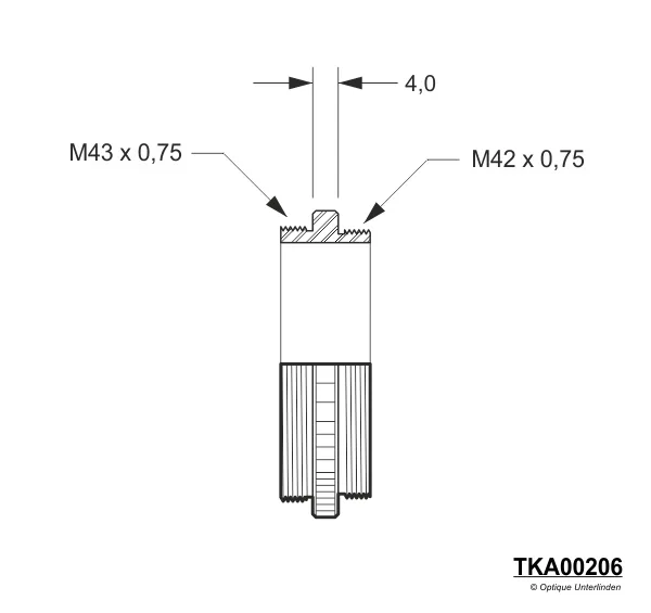 | Interface mécanique en sortie | Filetage M42 x 0,75 (filetage T) mâle |