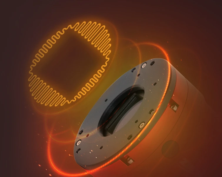 Une résistance chauffante en polyimide est installée sur la face avant de la caméra, au niveau de la vitre de protection. Elle évite que la buée ou le givre se dépose sur la vitre lors des poses.