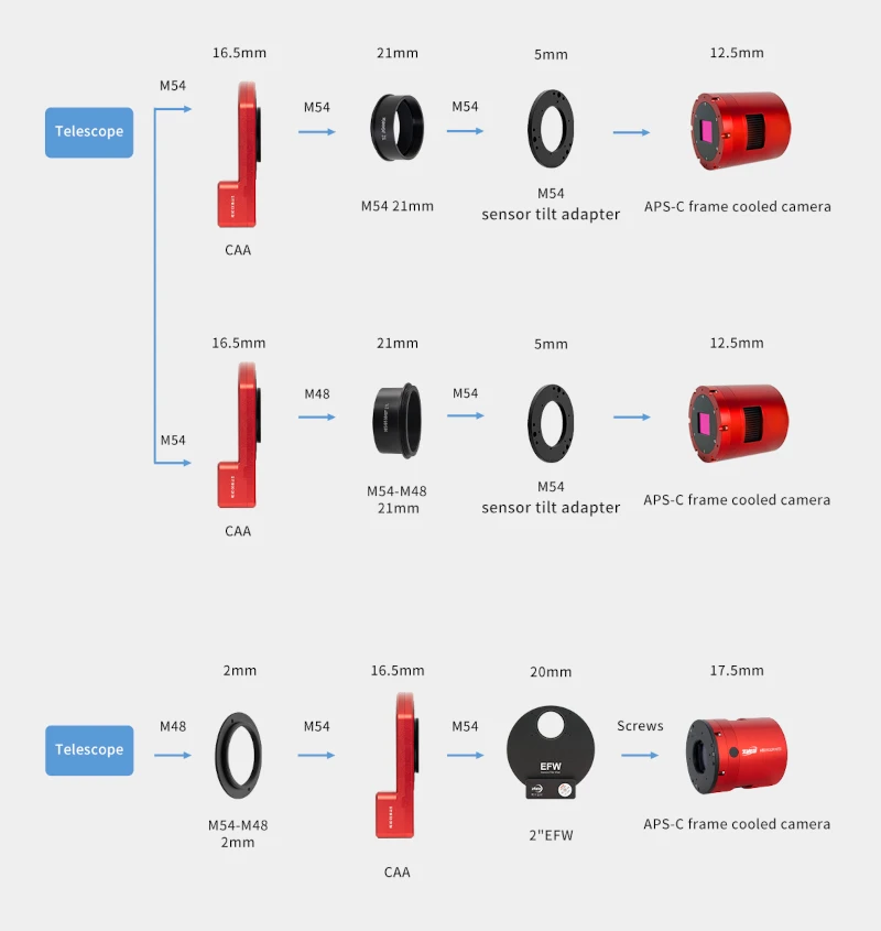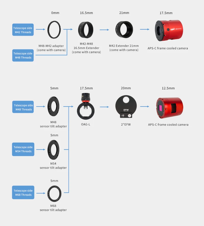 Montage de la caméra pour avoir un backfocus de 55mm