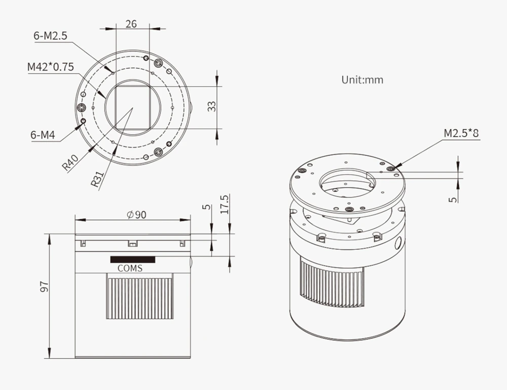 Entrée mécanique | Filetage M42x0.75 femelle |