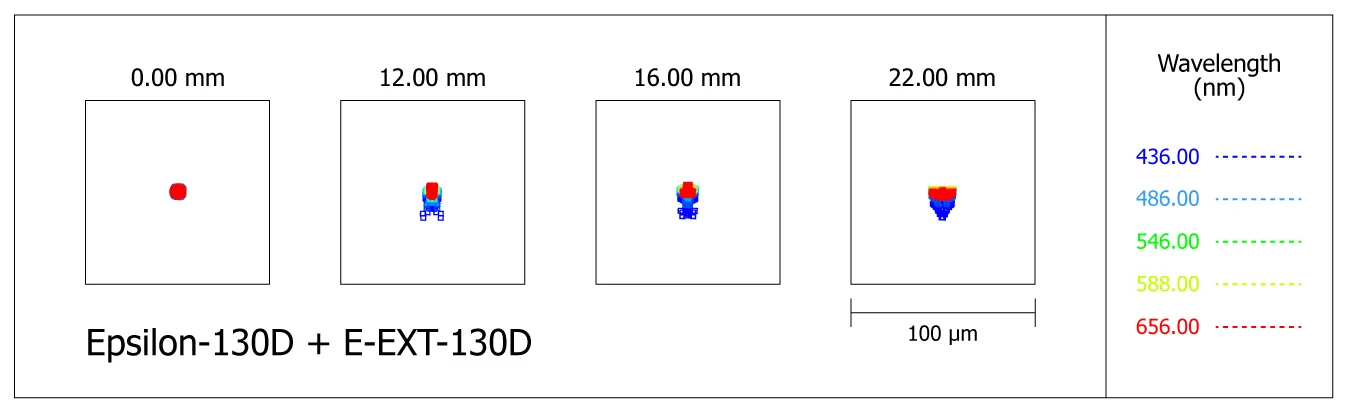Spot-diagram du télescope Takahashi Epsilon-130D avec ε-Extender E-130D