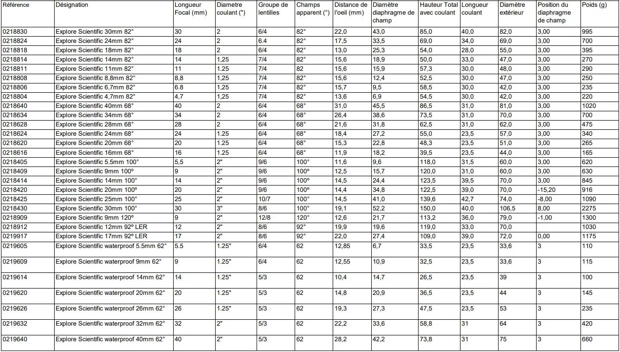 Tout savoir sur les oculaires Explore Scientific 82°