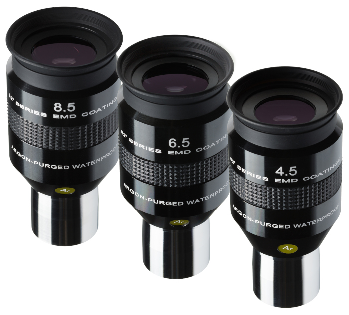 Une bonnette caoutchoutée est incluse avec chaque oculaire pour réduire l'intrusion de lumières parasites, ce qui augmente légèrement le contraste. La gamme ES LER 82° comprend 3 focales différentes : 4.5 / 6.5 / 8.5. Ils sont entièrement traités multicouches EMD et les bords sont noircis pour produire un contraste supérieur. Le prix est attractif pour des oculaires de cette qualité... une référence si vous désirez donner un coup de boost à votre télescope ou lunette en accédant au "grand champ".