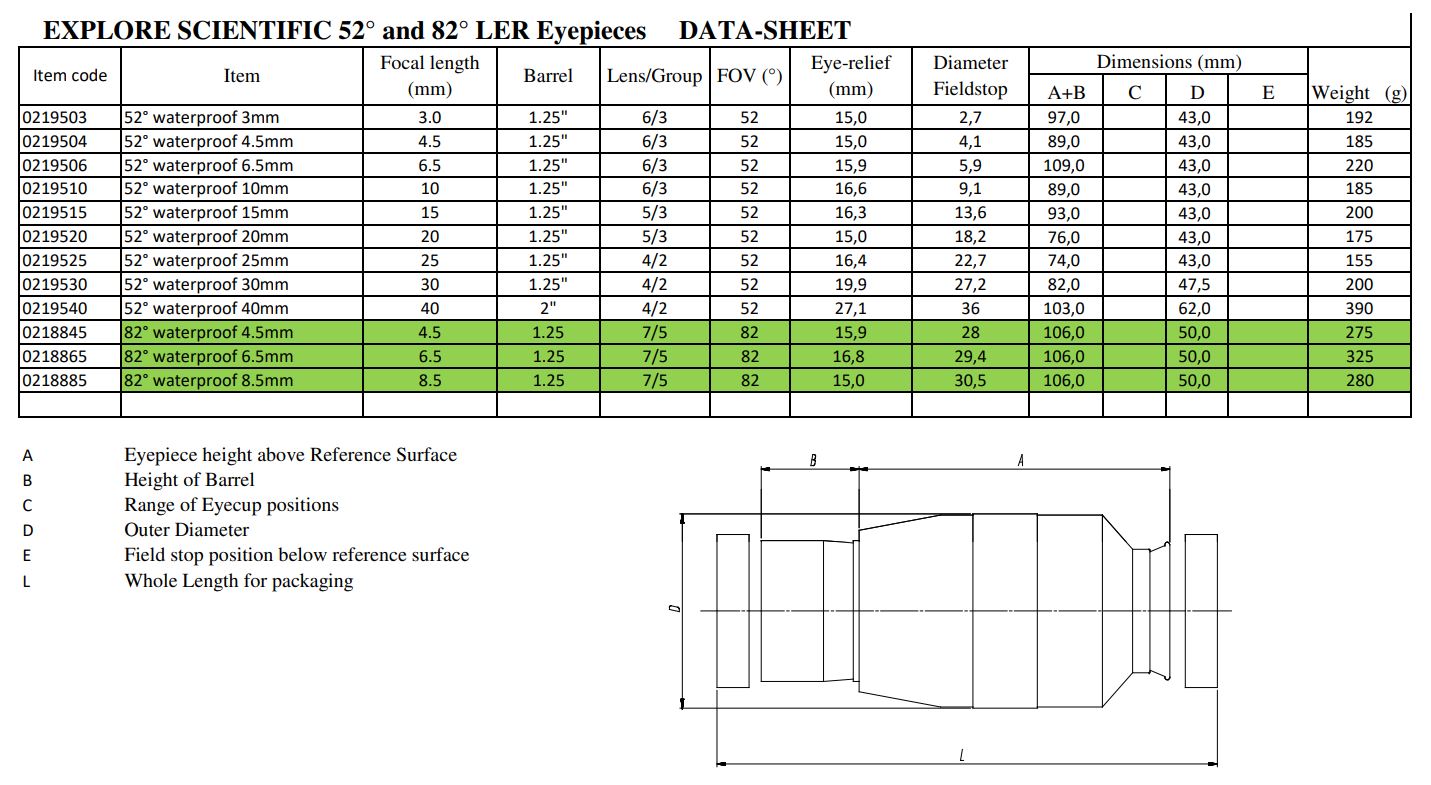 Tout savoir sur les oculaires Explore Scientific LER 82°