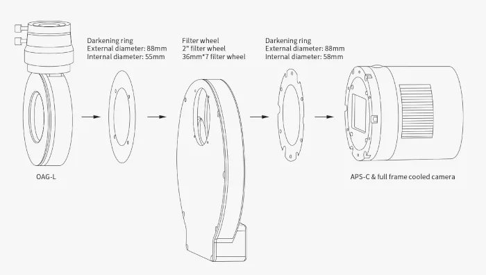 ( Code : ZWDRS-D88 )Pour éviter les fuites de lumière entre caméras ZWO et roues à filtres