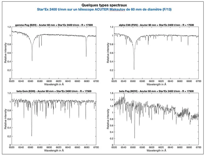 Avec un équipement modeste (petite lunette, petite caméra CMOS), vous pourrez réaliser des spectres à très haute résolution sur des objets brillants, c’est à dire voir des détails infimes dans le profil d’une raie d’absorption ou d’émission. Vous pourrez également mesurer les vitesses radial par effet Doppler, des évolutions dans le profil d’une raie en particulier, la mise en évidence d’un compagnon d’une étoile binaire, voir mesurer un champ magnétique par l’ajout d’un système de polarisation de la lumière. En passant sur un télescope de plus gros diamètre, Il faudra ajuster la largeur de la fente en fonction de la focale de votre télescope grâce à la fente à 4 positions livrée avec ce kit. Plus la focale est grande et plus la fente devra être large. Un plus gros télescope vous permettra d’avoir des spectres d’objets plus faibles.