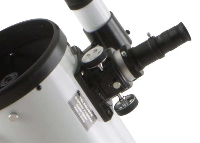 La mise au point s'obtient par l'intermédiaire d'un porte oculaire bi-coulant. Un adaptateur 31.75mm est en fourni en standard pour utiliser des oculaires de même format à partir de la sortie en 50.8mm. Une vis de serrage située en haut du porte oculaire permet de maintenir la mise au point suivant l'orientation du tube optique. Un chercheur achromatique 9x50 sur son support est aussi livré en standard. Avec un grand diamètre de 50mm pour un grossissement de 9x, il révèle des objets invisibles dans les chercheurs de plus petites dimensions.