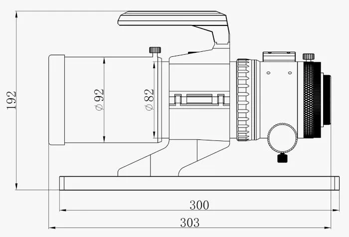 Mécaniquement, la FRA300 Pro est assemblée avec des composants usinés CNC de haute qualité, enveloppés d'un revêtement par pulvérisation et d'un léger processus d'oxydation. La conception de l'anneau tubulaire, du tube optique, de la poignée de transport et de la queue d'aronde est à la fois solide et esthétiquement élégante.